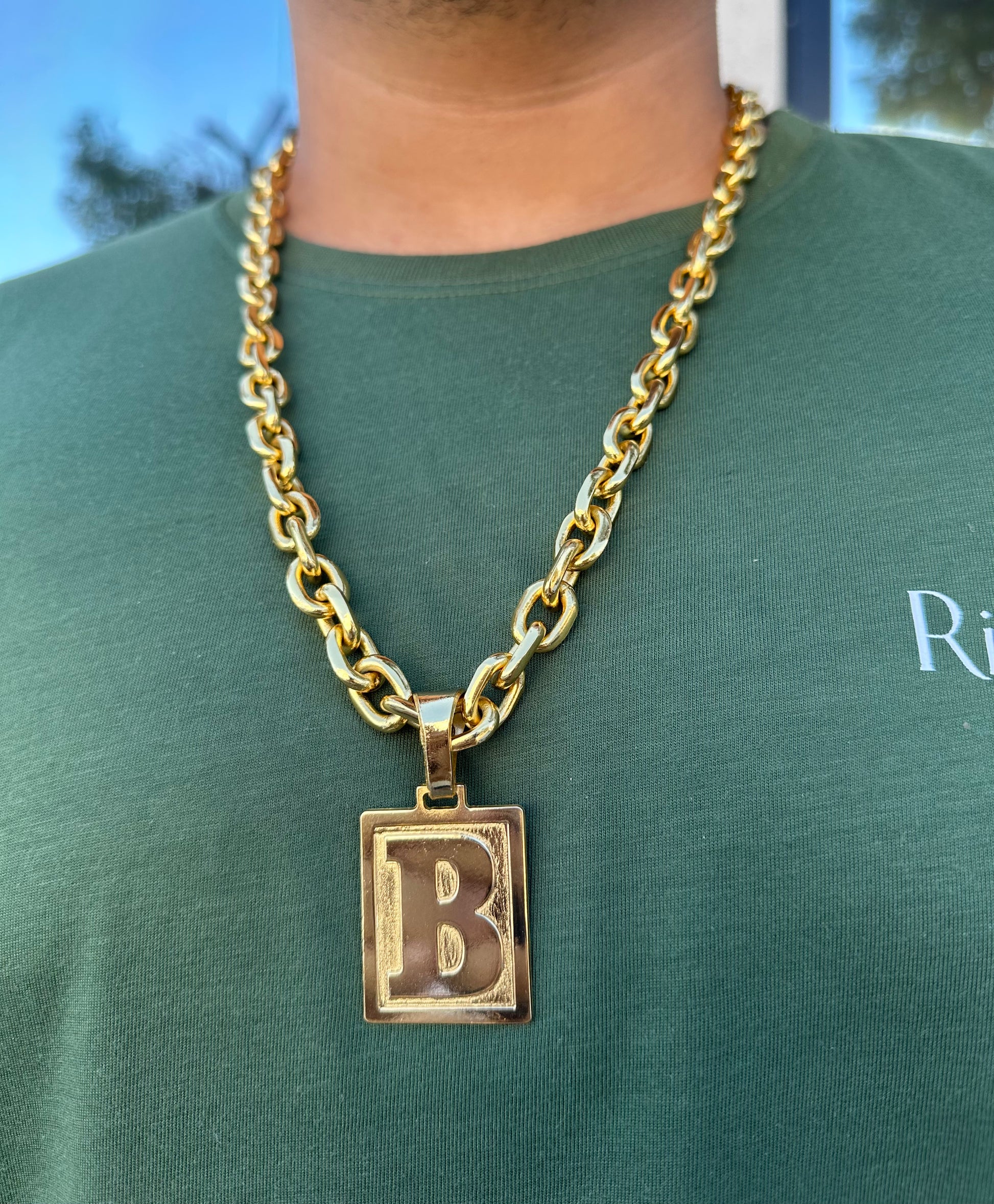 Corrente 8mm Cadeado Fecho Premium + Pingente Letra Banhado a Ouro 18K