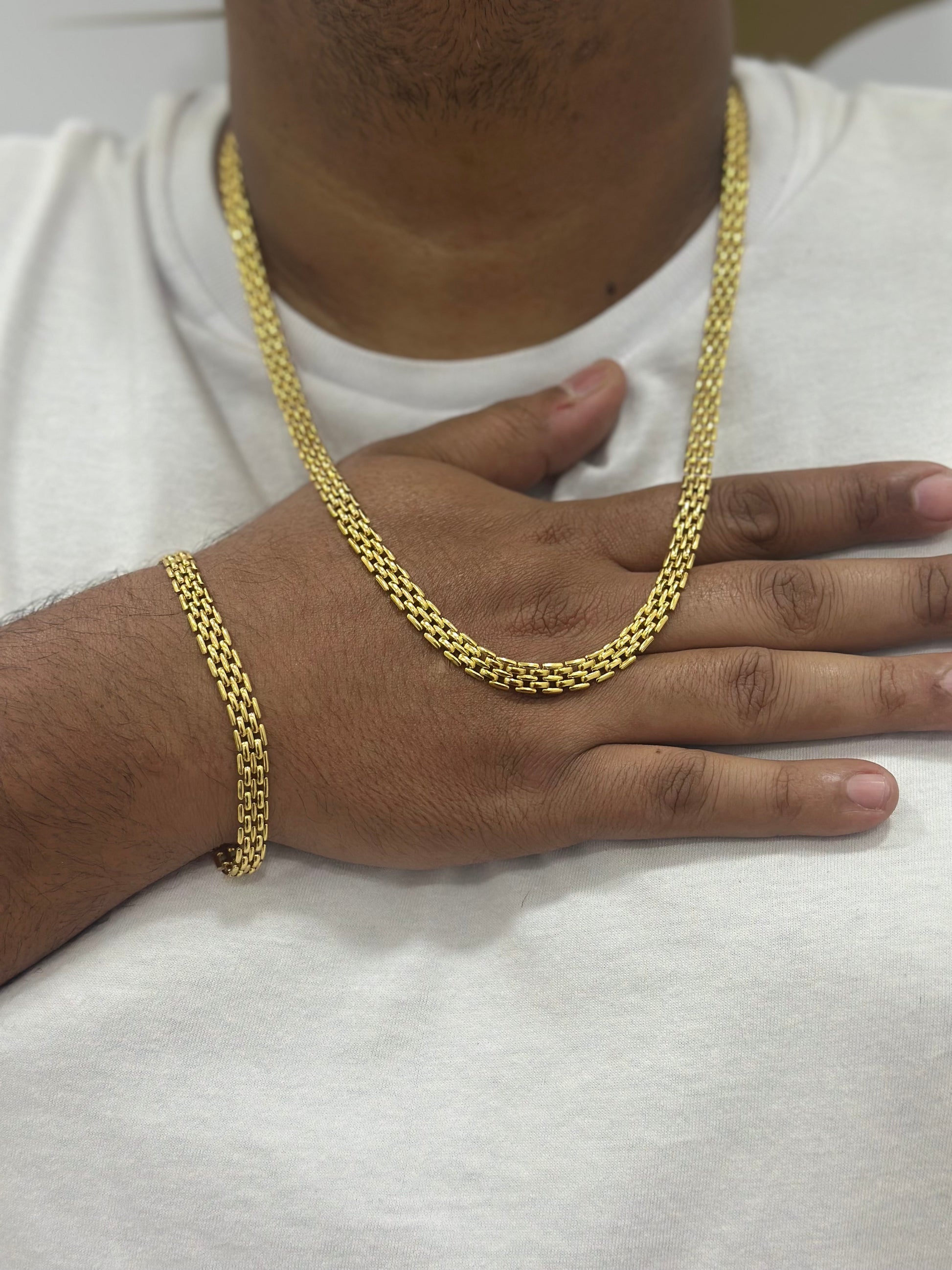 Joias maciças , elos soldados , idêntica a uma joia de ouro puro.