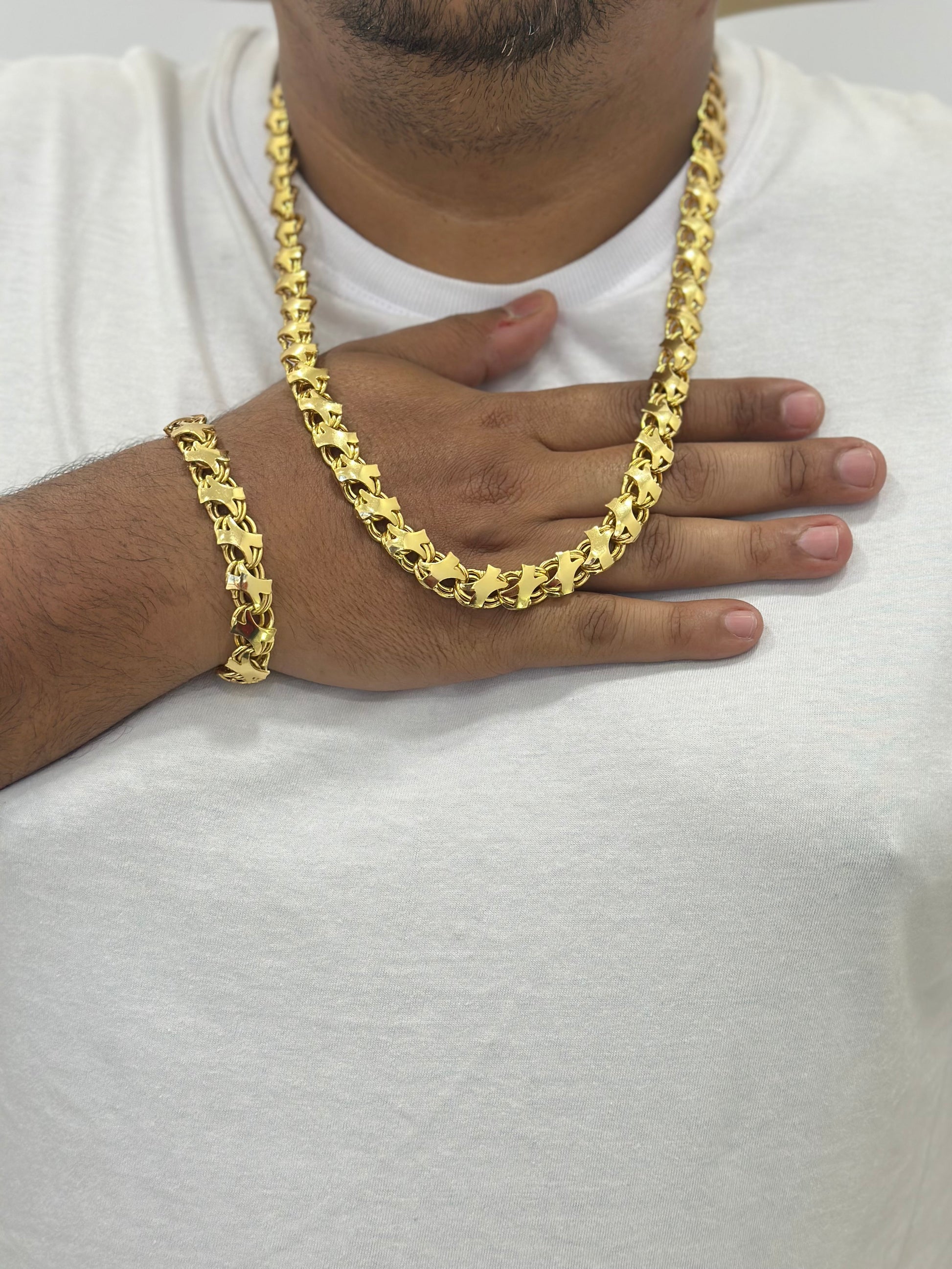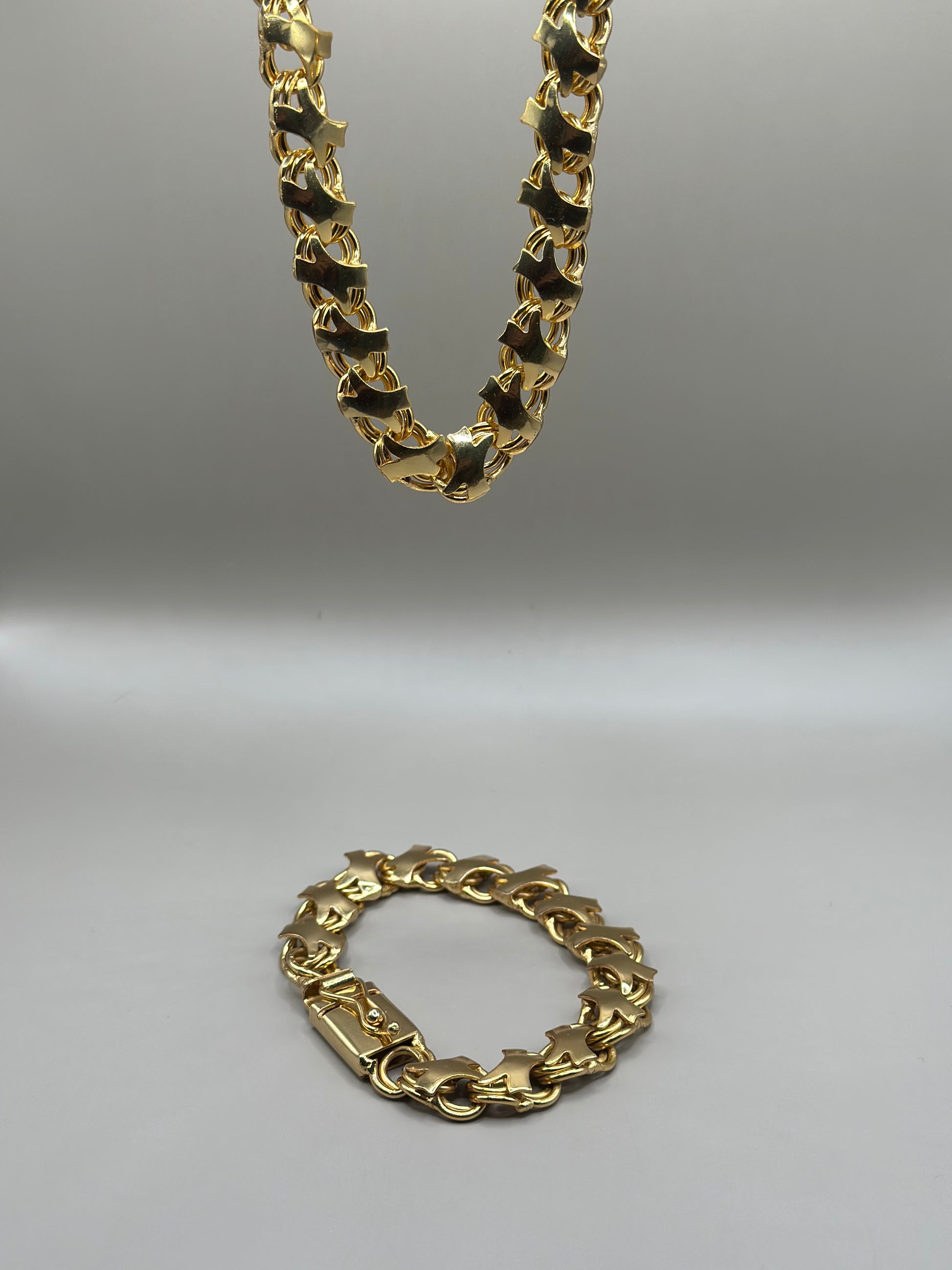 Joias maciças , elos soldados , idêntica a uma joia de ouro puro.